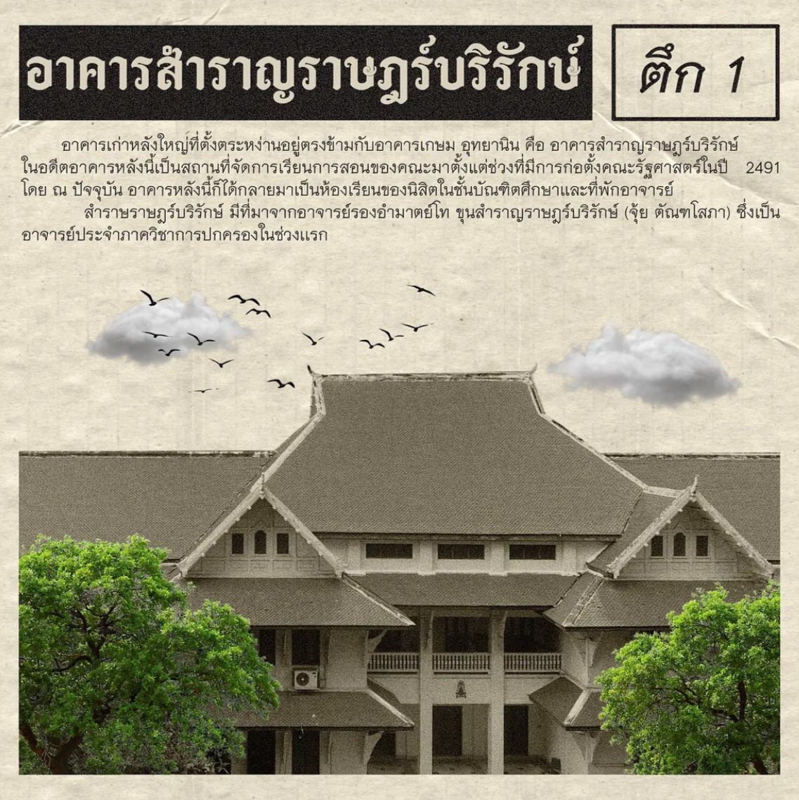 รายการนี้เป็นรายการสาระความรู้ที่จะนำเอาเหตุการณ์สำคัญในแต่ละเดือนมาถ่ายทอดเกร็ดความรู้คู่ความสนุกให้กับเพื่อน ๆ นิสิตคณะรัฐศาสตร์และทุกท่านที่ติดตามฝ่ายวิชาการอยู่ และเนื่องจากวันนี้เป็น “วันสถาปนาคณะรัฐศาสตร์ จุฬาลงกรณ์มหาวิทยาลัย” ดังนั้นเราจึงขอประเดิมคอนเทนต์ด้วยเรื่องราวเล็ก ๆ น้อย ๆ เกี่ยวกับคณะรัฐศาสตร์ นั่นก็คือ อาคารสถานที่ในคณะรัฐศาสตร์ จุฬาฯ ซึ่งนอกจากสิ่งที่พวกเราควรจะรู้จักเกี่ยวกับอาคารเหล่านั้นแล้ว ก็ยังมีชื่อของอาคารที่มีความเกี่ยวข้องกับบุคคลสำคัญที่มีส่วนร่วมในการพัฒนาคณะของเราตั้งแต่อดีตจนถึงปัจจุบัน ซึ่งเชื่อว่าอาจจะยังมีหลายคนที่ยังไม่รู้จัก หรือว่ารู้จักแบบผ่าน ๆ เพราะฉะนั้น เรามาร่วมทำความรู้จักกับอาคารสถานที่ในคณะกันเถอะ!